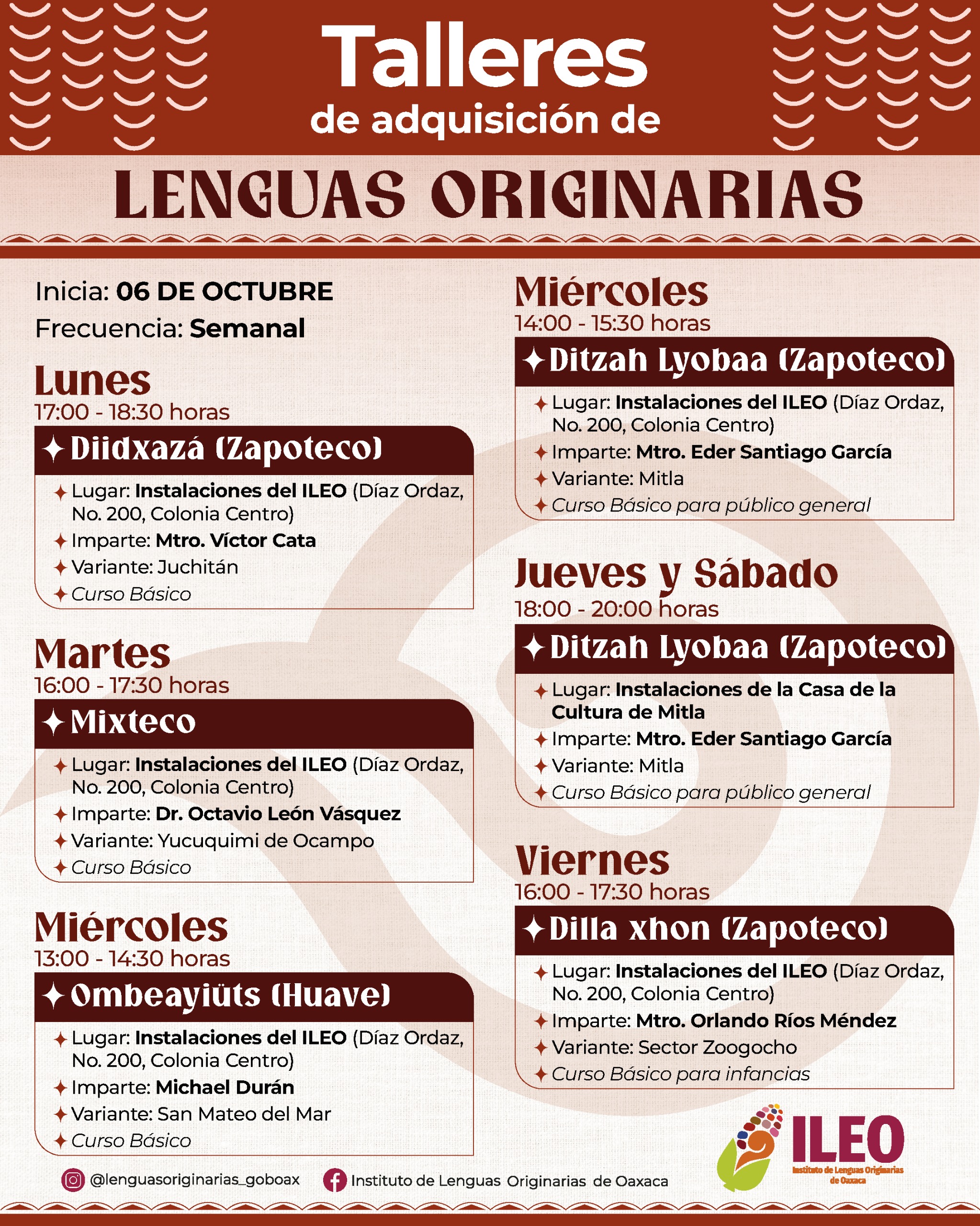 - Los cursos comenzarán el 6 de octubre en las instalaciones del Instituto de Lenguas Originarias de Oaxaca.