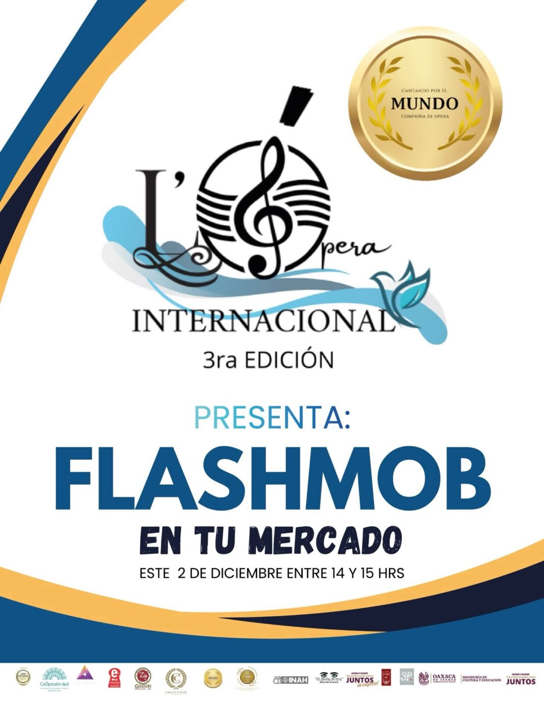 Oaxaca de Juárez, Oax.,28 de noviembre de 2025.- El Ayuntamiento de Oaxaca de Juárez informa que, en el marco de la Tercera Edición de L’Ópera Internacional, vecinas, vecinos, comerciantes y visitantes de los mercados de la ciudad podrán disfrutar de una presentación artística única: un Flashmob de ópera que recorrerá diversos mercados de la ciudad.
