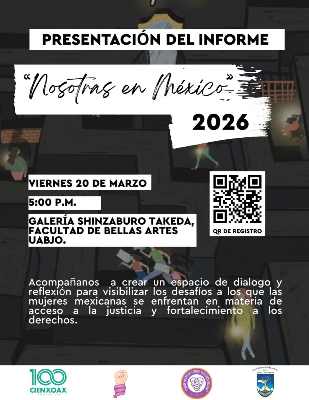 La UABJO les invita a la presentación del informe “Nosotras en México 2026” el día 20 de marzo a las 5:00 pm, en la galería Shinzaburo Takeda, Facultad de Bellas Artes UABJO