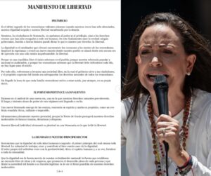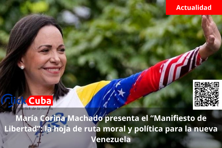 La líder de la oposición venezolana, María Corina Machado, informó que el Manifiesto de la Libertad contiene los principios para lograr una “nueva Venezuela”, lo que se hace extensivo a diversos países de América Latina.