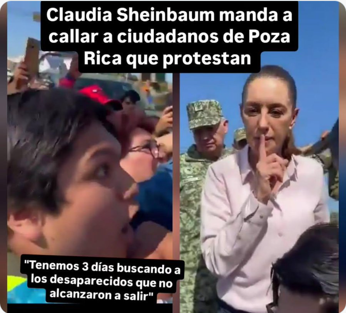 Por ello, Claudia Sheinbaum se enfrentó con decenas de reclamos en Poza Rica, Veracruz, por haber tardado tres días en ir. Miles de familias lo perdieron todo por las lluvias e inundaciones y la ayuda sigue sin llegarles.