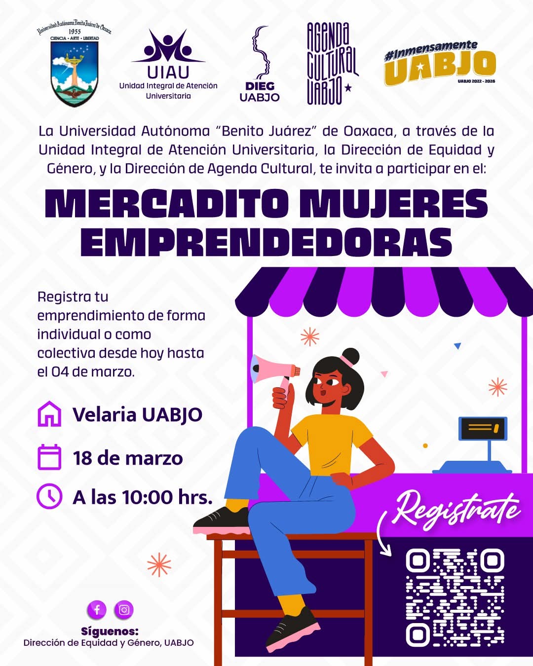 La UABJO les invita a participar en el “Mercadito mujeres emprendedoras”, el próximo 18 de marzo a las 10:00 am en la Velaria UABJO.