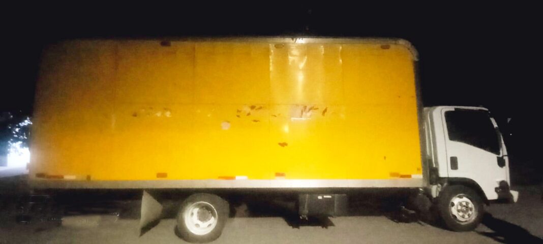 Al presentarse al lugar, los elementos observaron que se trataba de un vehículo marca Isuzu color blanco, con caja color amarillo, placas de circulación del servicio público federal.