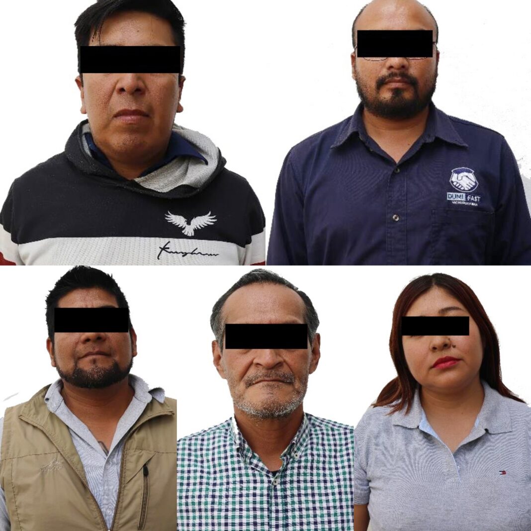 Ante el señalamiento directo, procedieron a la detención de quienes dijeron llamarse Óscar F. P. L., de 52 años de edad; Ricardo C. L., de 41 años; Josué S. L., de 38 años; Patricia J. R. G., de 29 años y Sergio G. M., de 31 años de edad.