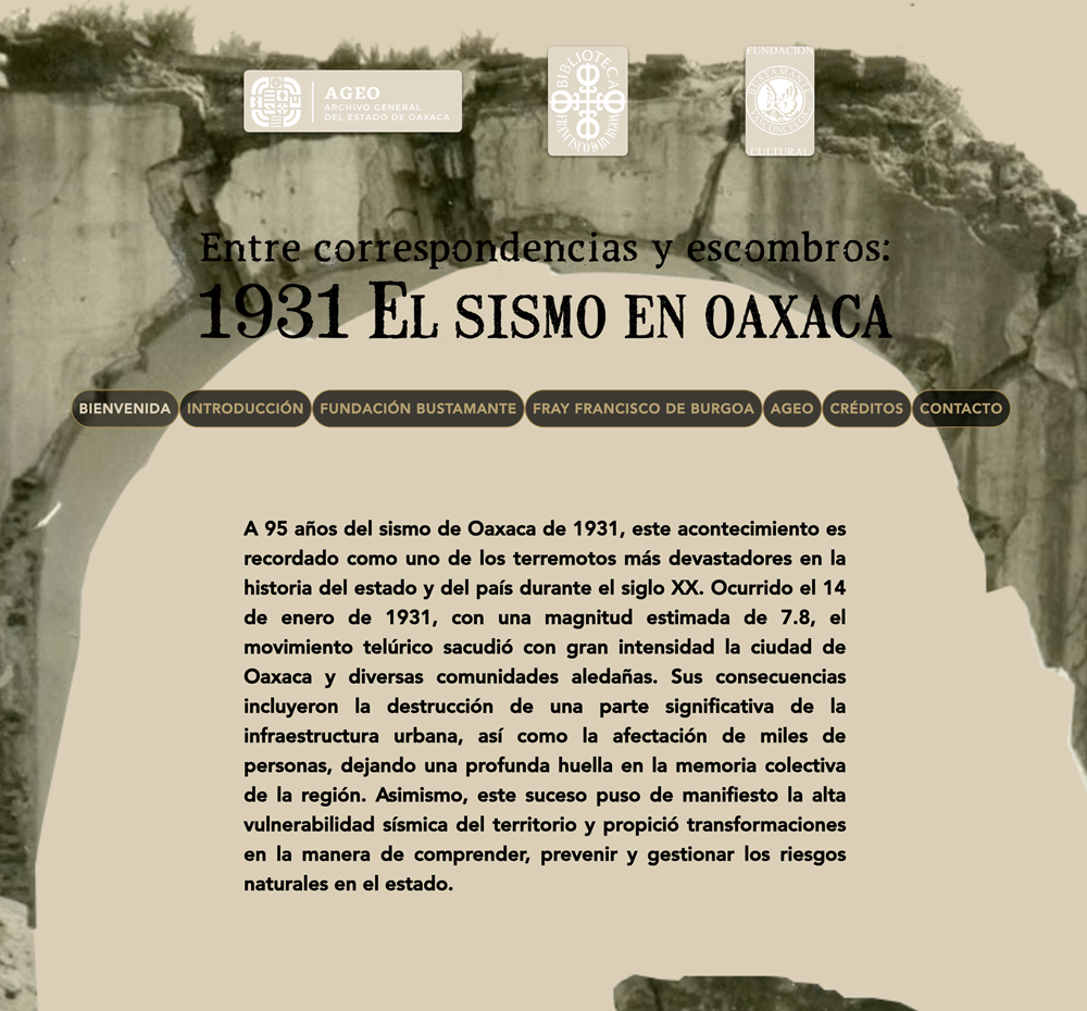 - Esta muestra se encuentra disponible en la plataforma digital WIX: https://archivohistoricode9.wixsite.com/sismo-oaxaca-1931/ageo