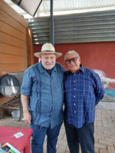 Al mismo tiempo, acudió a saludar Julián Vidal Gómez Rodríguez, director general de la empresa Single Village Mezcal, S.A. de C.V., y autor del libro «Una vida consagrada al mezcal oaxaqueño».