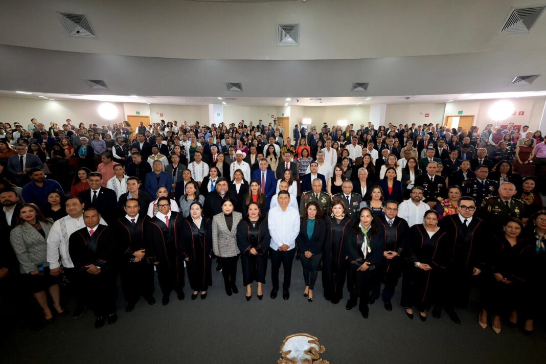 Puntualizó que uno de los avances más significativos en este periodo fue la implementación del programa “Justicia más cerca de ti”, a través del cual magistradas, magistrados, juezas, jueces y personal judicial ya han recorrido los municipios de San Pedro Pochutla, en la Costa; Ixtlán de Juárez, en la Sierra Juárez y Santo Domingo Tehuantepec, en el Istmo. “Nos levantamos del escritorio para ir al territorio”.