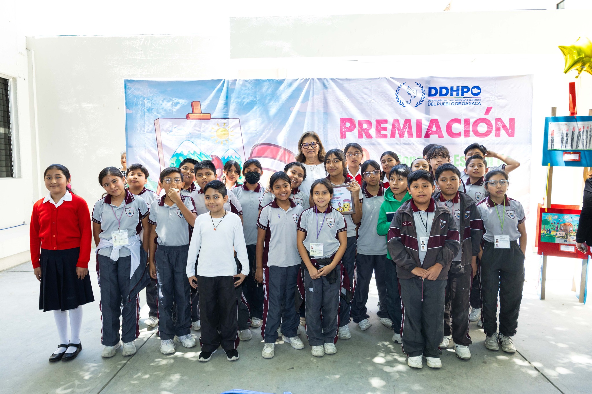 La Defensora de los Derechos Humanos del Pueblo de Oaxaca, Mtra. Elizabeth Lara Rodríguez, encabezó el acto de premiación del Segundo Concurso Estatal de Dibujo Infantil 2026 “Colorea tus Derechos”, acompañada del jurado calificador, así como de autoridades estatales.