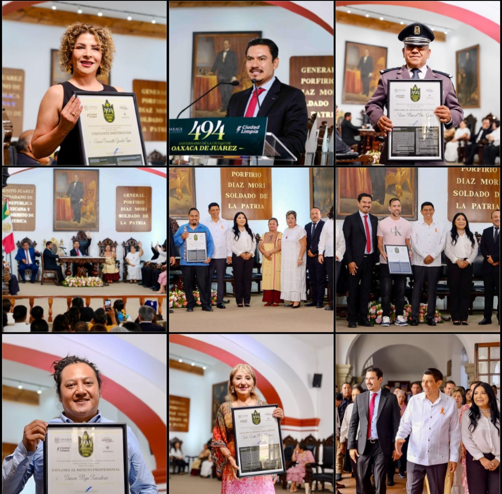- El presidente municipal Ray Chagoya, acompañado por el gobernador Salomón Jara Cruz, encabezó la entrega de distinciones a ciudadanas y ciudadanos oaxaqueños, reconocidos por su destacada trayectoria y sus valiosas contribuciones al desarrollo y fortalecimiento de Oaxaca de Juárez.