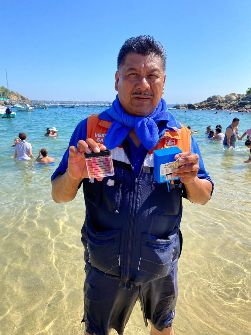 Durante 6 días, personal especializado de Servicios de Salud de Oaxaca (SSO) realiza muestreos en 17 playas, las cuales serán analizadas por el Laboratorio Estatal de Salud Pública (LESP) Oaxaca que, posteriormente, emitirá un dictamen.