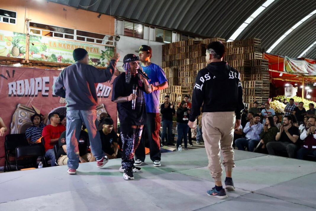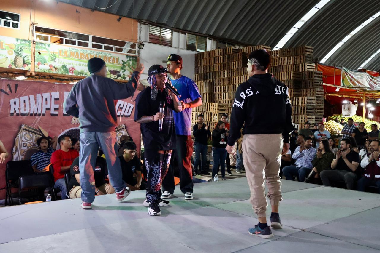 Como parte del trabajo interinstitucional con el municipio de Oaxaca de Juárez, se desarrolló la gran final del primer concurso de freestyle Rompe el Silencio con tus Rimas, en la Central de Abasto.