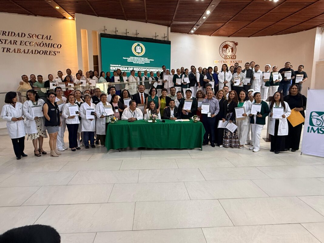 Durante la ceremonia se entregaron cartas de reconocimiento y distintivos al personal homenajeado, como muestra del agradecimiento institucional a quienes, con profesionalismo y lealtad, han dedicado gran parte de su vida laboral al servicio de la población derechohabiente.