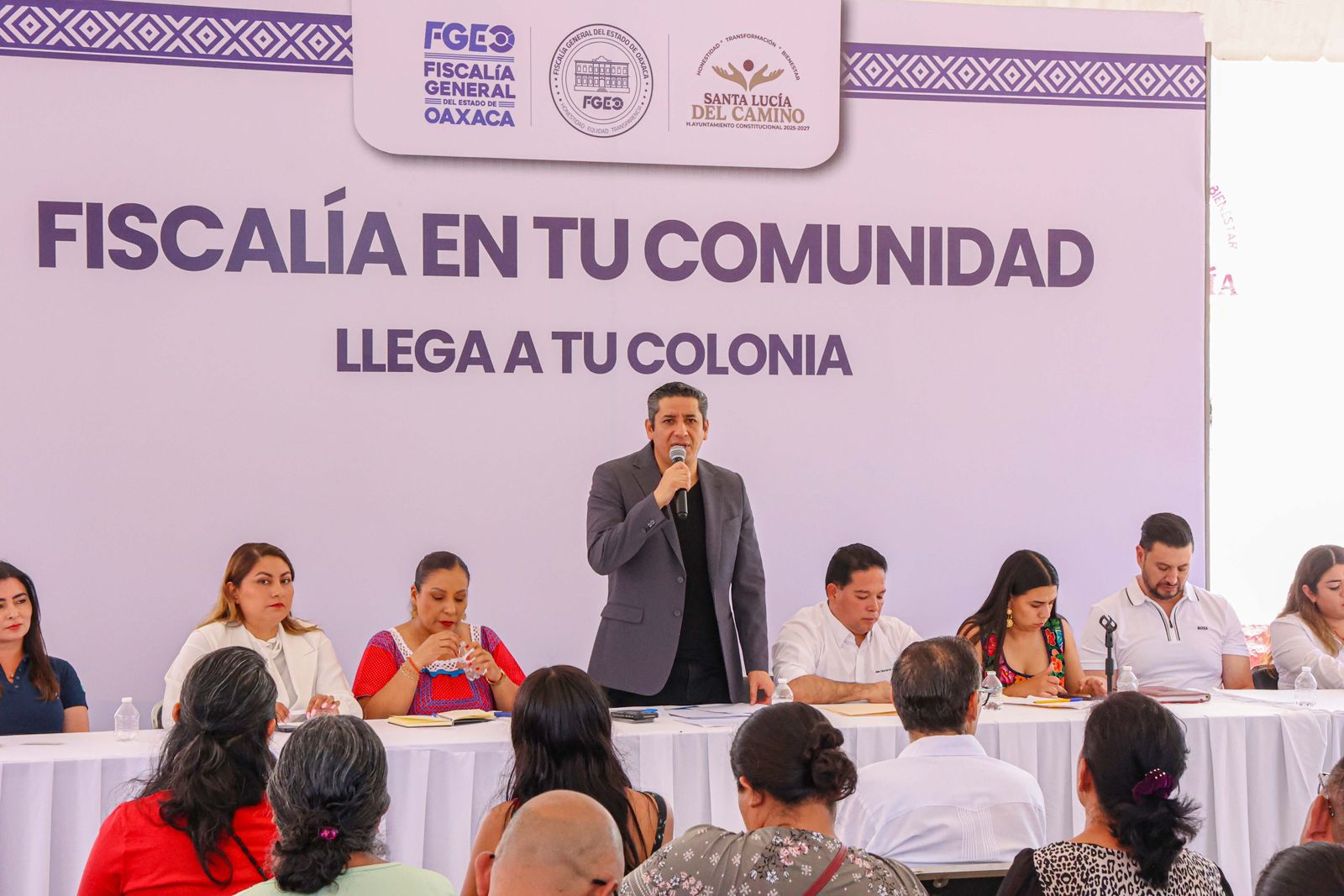 Oaxaca de Juárez, Oax. 06 de septiembre de 2025.- Durante la jornada de “Fiscalía en tu Comunidad llega a tu Colonia”, que se realizó en el municipio de Santa Lucía del Camino, el Fiscal de Oaxaca, Bernardo Rodríguez Alamiila sostuvo que este programa interinstitucional de proximidad social permite conocer y atender las necesidades de la población en materia de procuración de justicia y seguridad pública, por ello, se abrirá una oficina del Ministerio Público en la zona, para atender con mayor celeridad a las víctimas.