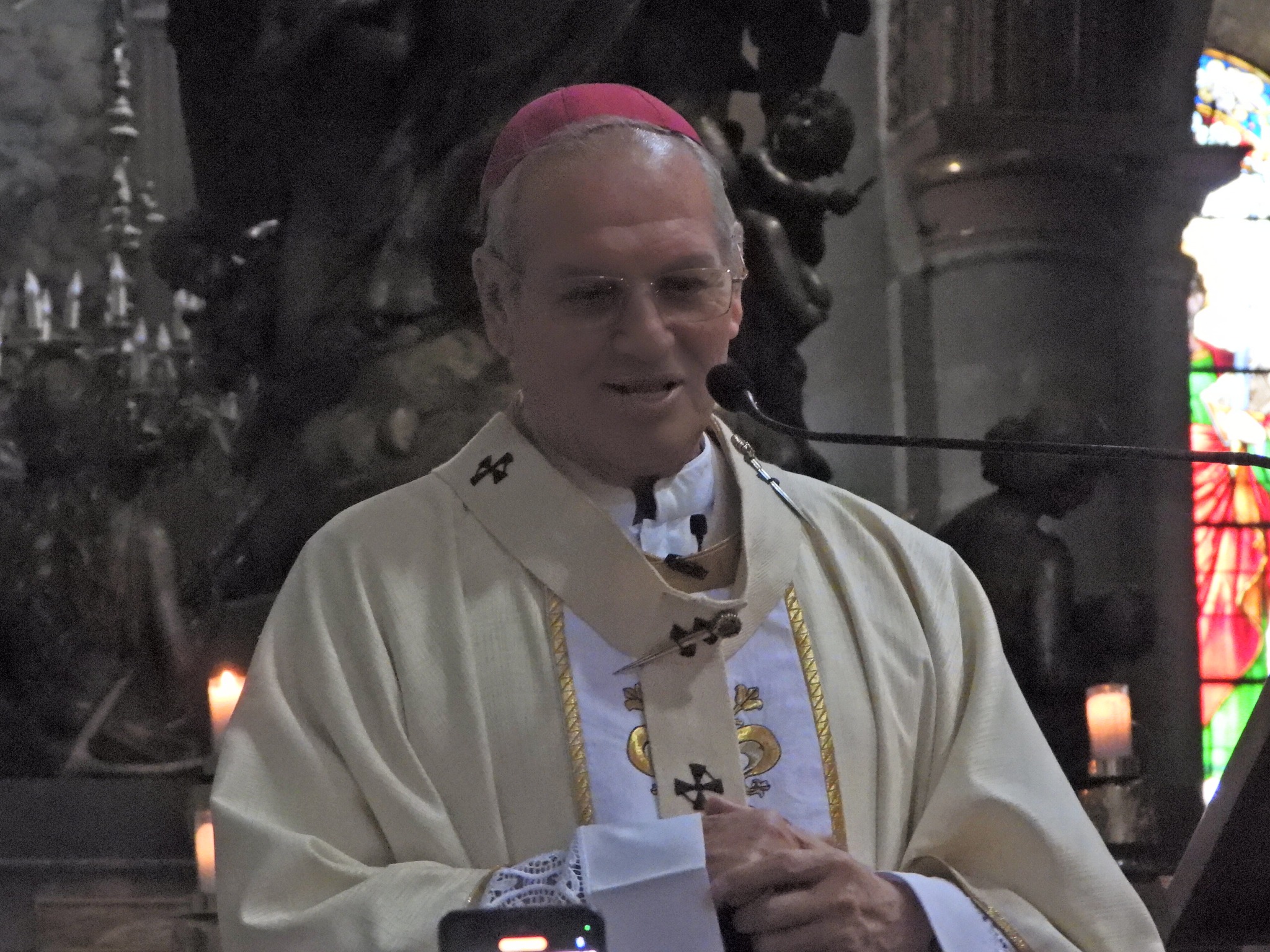 En medio de un “compló” que dejó en penumbras a la Catedral, al ser cortada la energía eléctrica por la CFE, flanqueó al Arzobispo el Provincial de los frailes dominicos, Fray Alejandro Latapí Díaz.