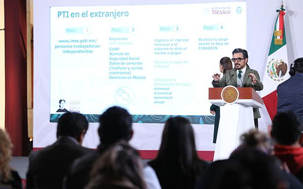 Comentó que para registrarse las personas deben ingresar a la página www.imss.gob.mx/personas-trabajadoras-independientes, capturar su CURP, Número de Seguridad Social (NSS), datos de contacto y proporcionar un domicilio en México. Una vez realizado el registro, deben indicar su ingreso mensual, con lo cual una calculadora determina el monto de la cuota a pagar, misma que puede cubrirse de forma mensual, bimestral, semestral o anual.