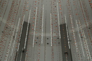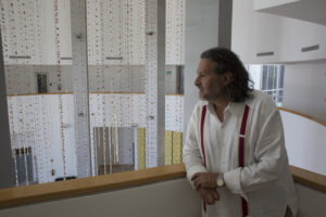Este misticismo lo quise trasladar a esta pieza de cerámica, que nos llevó casi un año de trabajo a partir de la conceptualización, son 22 mil piezas de barro/cerámica hechas a mano, haciendo una alusión a los cascabeles como si fueran una semilla. Se armaron 180 hilos de 13 metros y otros de 11.5 metros, trasladamos la pieza de Oaxaca a Sonora para que mi equipo y yo la colocáramos manualmente, requerimos de andamios colocados a 17 metros de altura, una grúa no permitía tener la movilidad necesaria, fue una odisea colocar cada hilo.