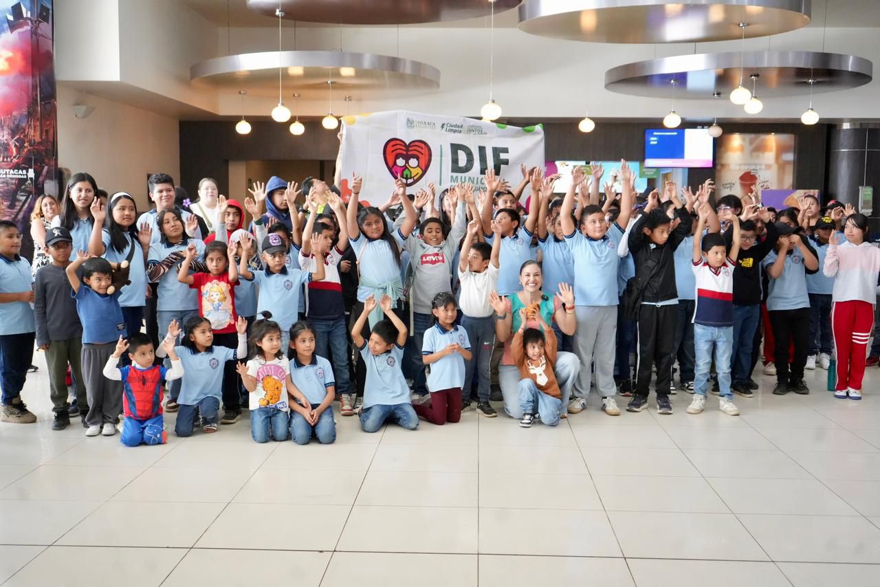 La actividad realizada en el marco del día de la niña y el niño, fue posible gracias al trabajo coordinado con el Instituto Nacional para el Federalismo y el Desarrollo Municipal (INAFED) y la empresa Cinépolis, sumando esfuerzos para brindar espacios de esparcimiento a la niñez oaxaqueña.