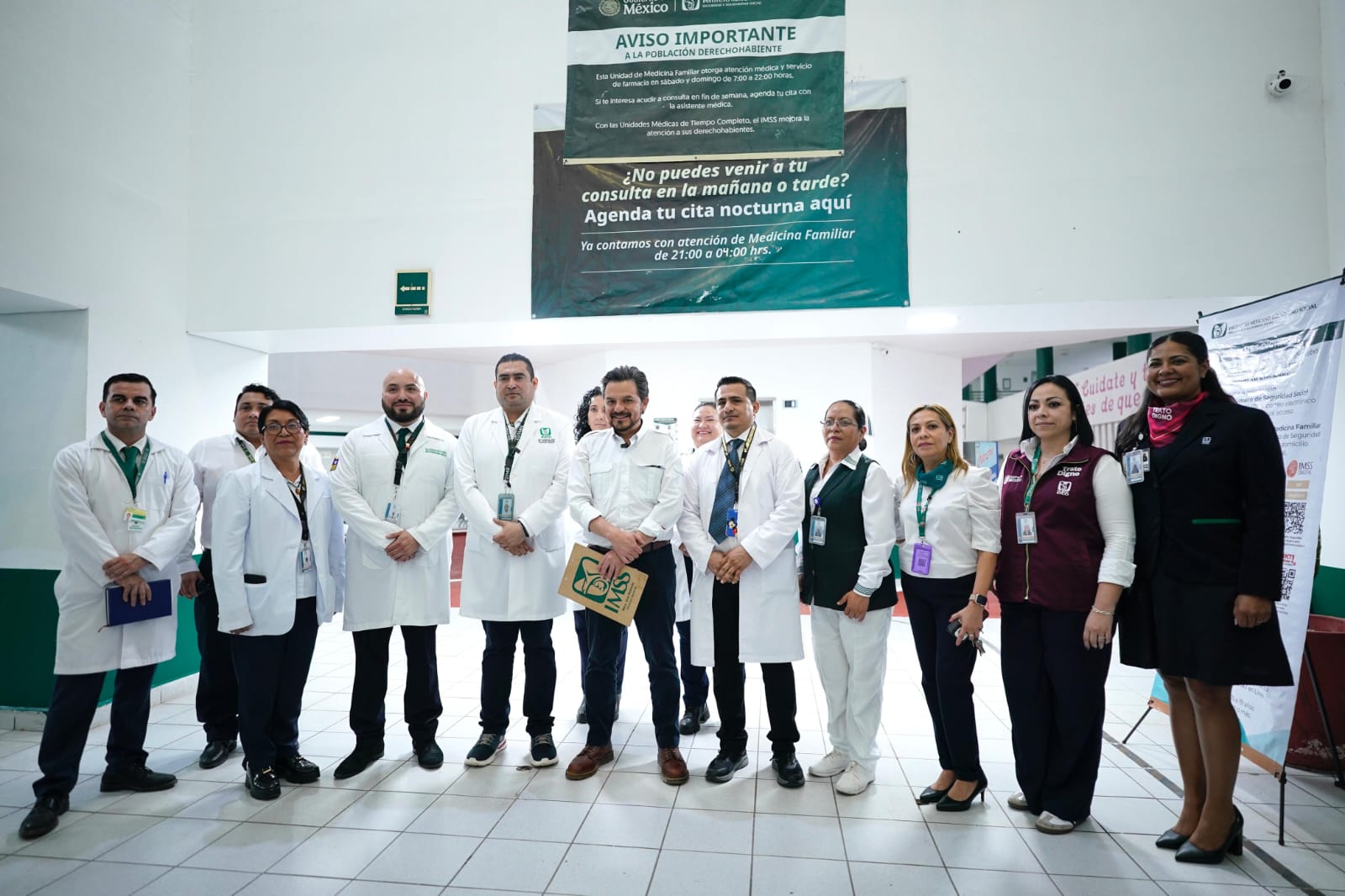 Durante su recorrido, destacó que esta unidad forma parte de un proyecto del Seguro Social que ofrece atención médica de las 21:00 a las 04:00 horas, particularmente pensado para personas trabajadoras cuyos horarios laborales —especialmente en sectores como hotelería y turismo— dificultan acudir a consulta en los turnos tradicionales.
